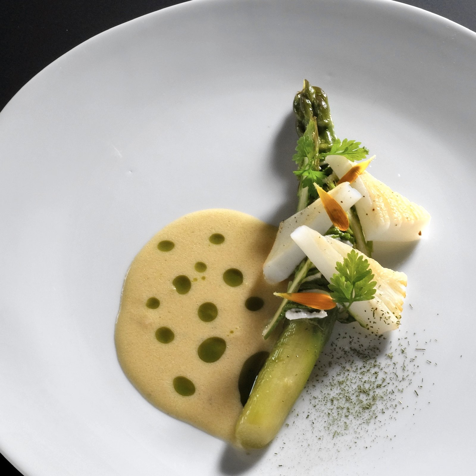 It is through a natural, ethical and sincere cuisine that chef Baptiste Moura introduces you to a unique world around seasonal products, you'll travel with menus, an attempt to reconnect the human to the living world.